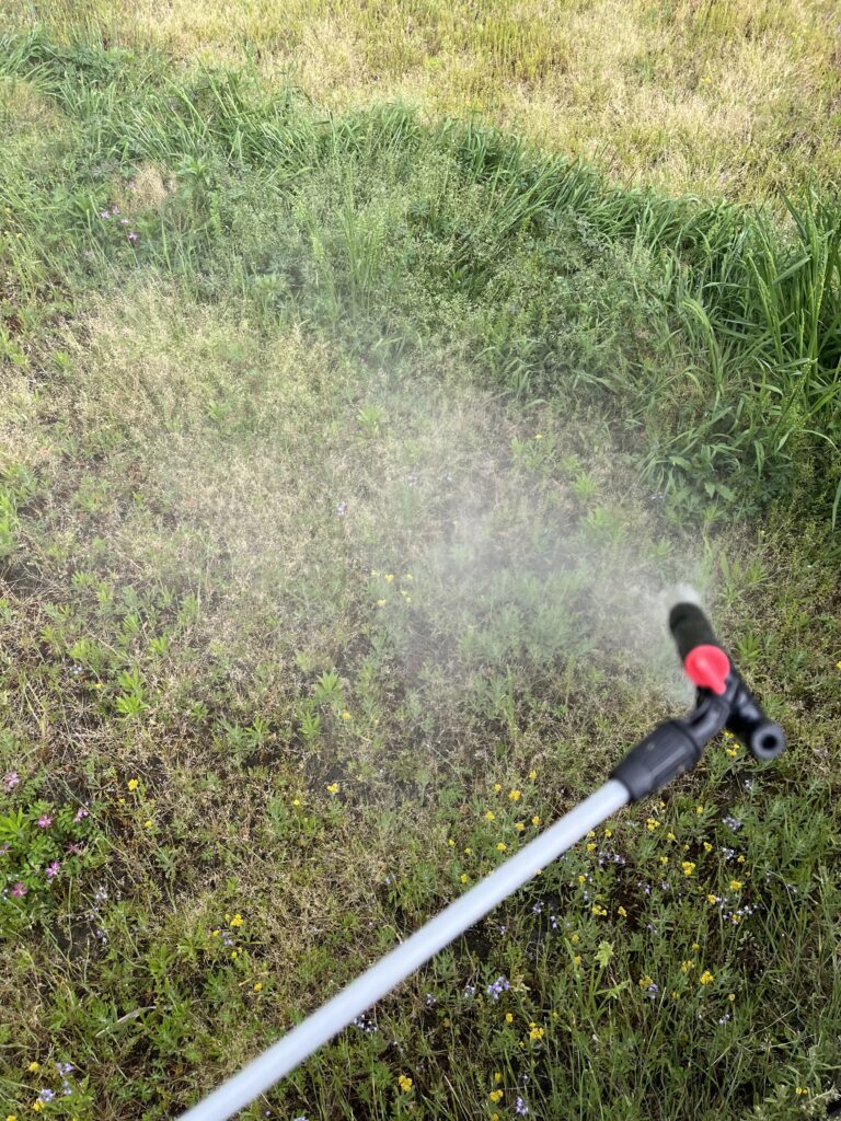 草が鬱蒼と伸びる前に、しっかり除草剤を散布します!
