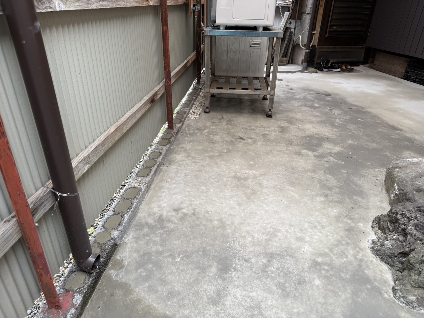 物干しの壁面取付:庇下で便利になりました!